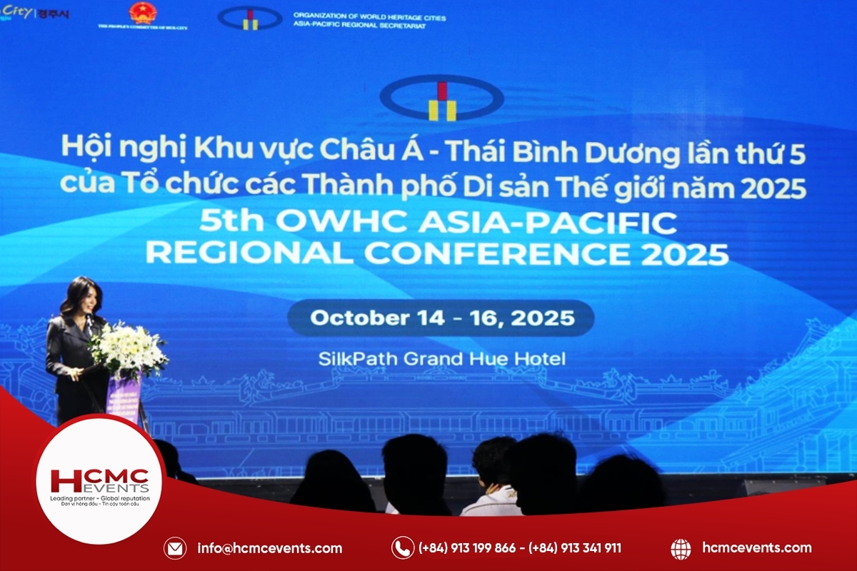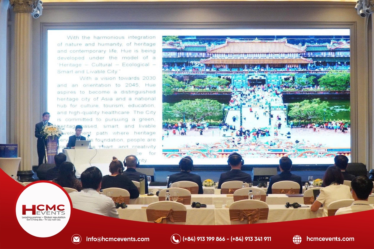 HCMC Events tự hào được đồng hành cùng sự kiện với hạng mục cung cấp thiết bị (cabin dịch, photobooth, sân khấu, âm thanh ánh sáng, tivi, giá tranh, bộ đàm…), giúp kiến tạo không gian hội nghị chuẩn quốc tế, góp phần lan tỏa thông điệp: Bảo tồn di sản phải đi đôi với nâng cao chất lượng sống, mở ra một viễn cảnh tương lai hài hòa, nơi truyền thống và hiện đại giao thoa rực rỡ.